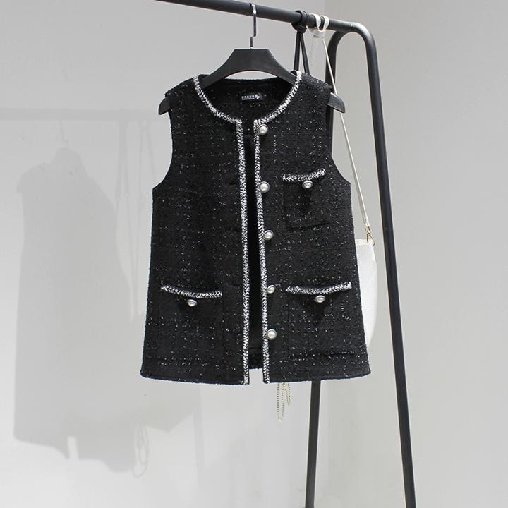 ツイードジレ ツイード ボタン ジレ ベスト トップス レディース ショート コート 春 秋 冬 ママコーデ 体型カバー CCC183 オフィスコーデ