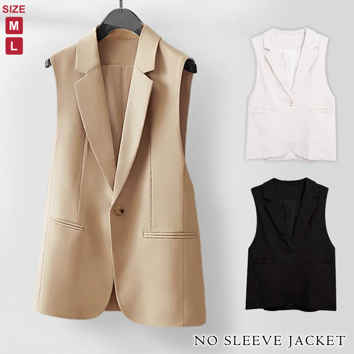 テーラードジャケット レディース 春 夏 春夏 黒 無地 ジャケット ジレ ベスト ノースリーブジャケット オフィスカジュアル フォーマル ブラック アイボリー ベージュ 20代 30代