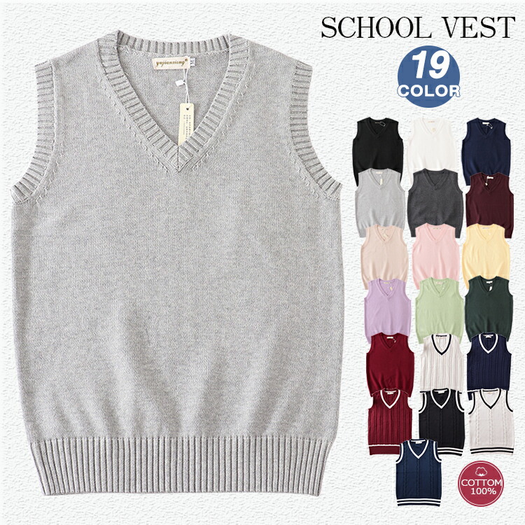 スクールベスト ニット 女子 綿 スクール ベスト 制服 Vネック 春 夏 秋 冬 通学 学生 女子高生 高校生 中学生 コットン レディース 学校 シンプル 大きいサイズ 全14色 XS~3X 無地