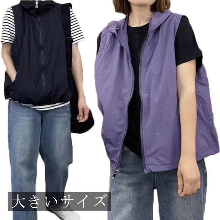 トップス レディース 春 春夏 きれいめ ゆったり 半袖 半袖パーカー フード付き ベスト 涼しい ジップアップ アウター 切り替え 無地 カジュアル 前開き 大きいサイズ シンプル