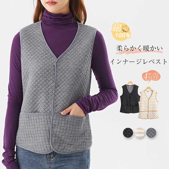 中綿ベスト vネック ベスト レディース 秋冬 綿100% インナー 前開き 防寒ベスト ジレベスト キルティング トップス 秋 冬 春 防寒 暖かい ノースリーブ 軽い 大人 シンプル 重ね 着回し