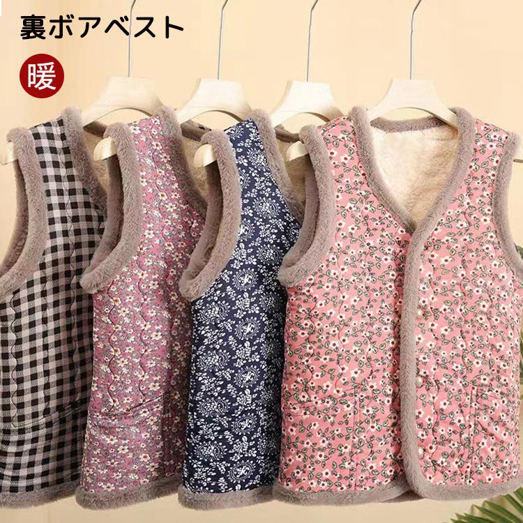 秋冬 おばあちゃん 裏ボアベスト 保温効果抜群!