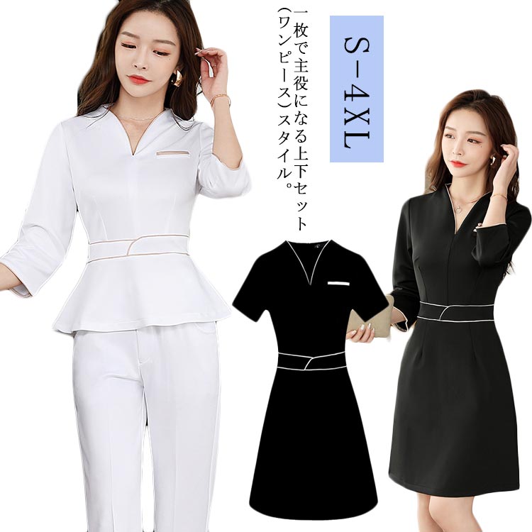 ユニフォーム エステ サロン通勤 レディース 女性 制服 おしゃれ ワンピース 上下セット パンツスーツ ワンピーススーツ 半袖 七分袖 夏用 美容 サロン 歯科衛生士 ホテル 技師服 夏 秋 足湯