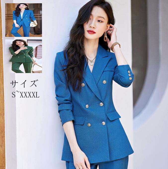 3色 2点セット 上下セット パンツスーツ ブレザー ジャケット+パンツ ビジネス 20代30代40代 通勤 OL 着痩せ キャバ レディーススーツ 春夏秋 入学式 普段着 カジュ S~XLママスーツ