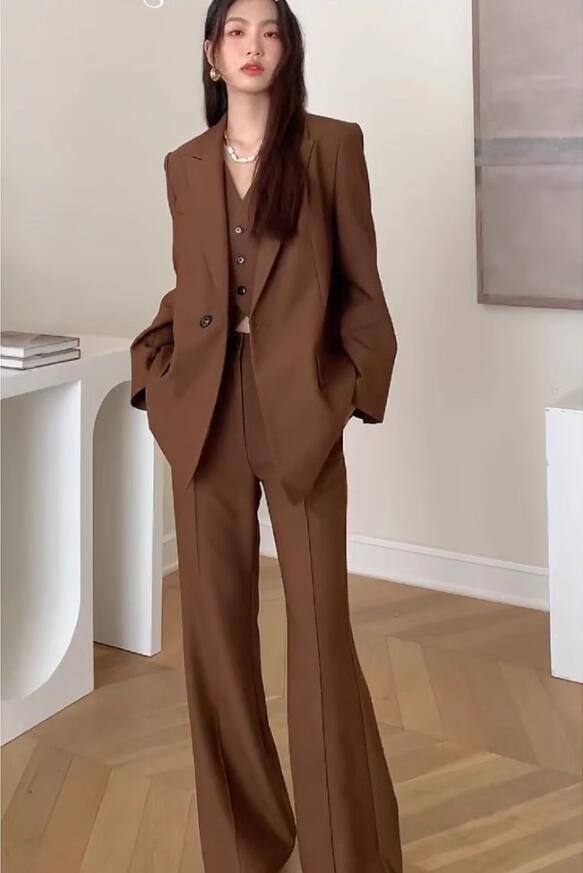 大人気 高品質 3色 2点セット 無地 パンツスーツ 上下セット ブレザー ジャケット+パンツ レディーススーツ 日常 通勤 入学式 入園式 トレンド ~ コーヒー ベージュ グリーン 緑