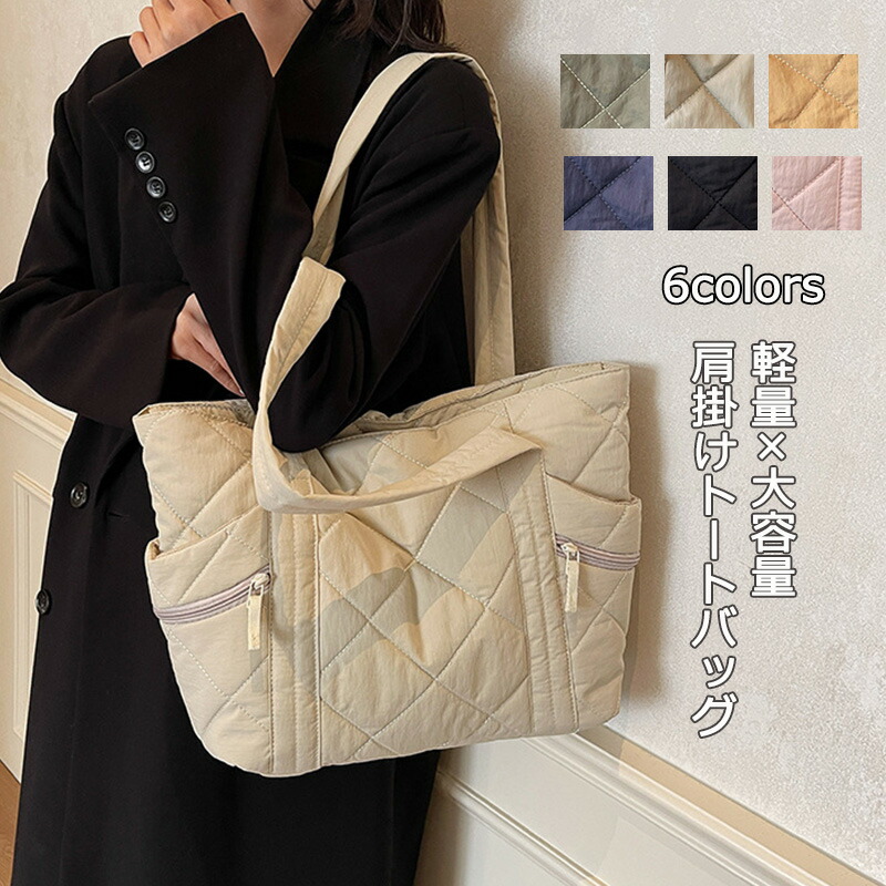 ショルダーバッグ レディース トートバッグ バッグ 2way 大容量 軽い ナイロン キルティング キャンパス トート ショルダー 2wayバッグ 鞄 カバン 大きめ 軽 かばん