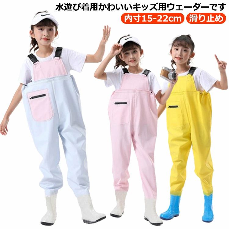 ウェーダー 胴長 チェストハイウェーダー 防水 胴付き長靴 子供用 プレイウェア 水遊び用 お砂場着 軽量 快適な着心地 耐摩耗性 女の子 レインパンツ 収納ポケット付き 雨の日 男の子