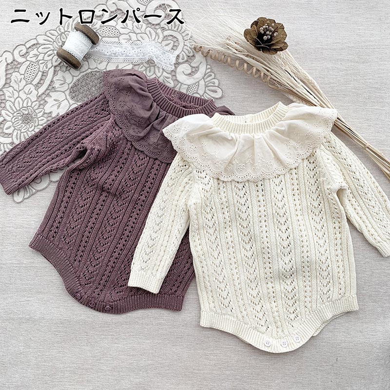 ベビー ロンパース 女の子 カバーオール ベビー服 フリル かわいい おしゃれ 長袖 あったか ニット 赤ちゃん ニットロンパース 服 子供服 子ども服 フォーマル 新生児 出産お祝 お出かけ