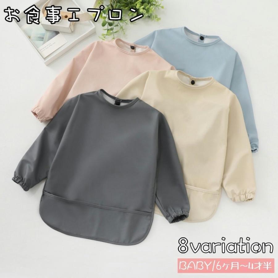 お食事エプロン スモック ベビー 赤ちゃん キッズ 子供用 男の子 女の子 長袖 エプロン 汚れ防止 食べこぼしキャッチ 防水 保育園 幼稚 ポケット