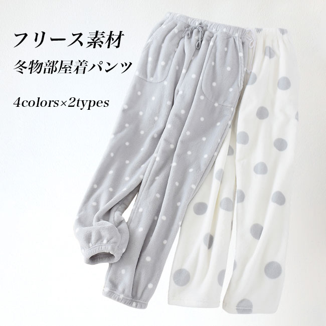 フリースパンツ ルームウェア ボトムス レディース 部屋着 ロングパンツ 厚手 冬 モコモコ フリース あったか 水玉柄 ドット柄 パジャマ ナイトウェア リラックス 冬パンツ 長ズボン 部屋着パンツ