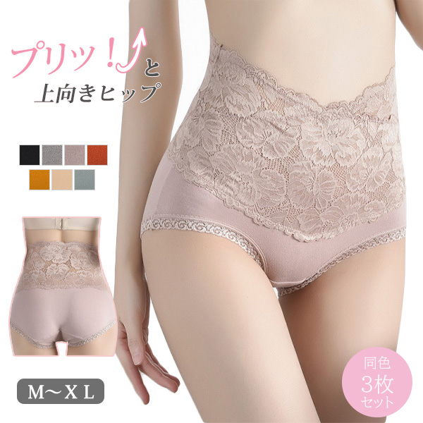 ハイウエストショーツ 同色3枚セットレディース インナー 快適 レース 花柄レース 伸縮ショーツ ハイウエスト 深ばき パンツ 下着 お腹引き締め 冷え防止 温活 すっきり 伸縮 無地 シンプ 柔らか