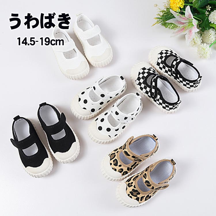 子供靴 女の子 男の子 上靴 上履き うわばき キッズ 通気性 ドット柄 チェック柄 ヒョウ柄 15 16 17 18 19