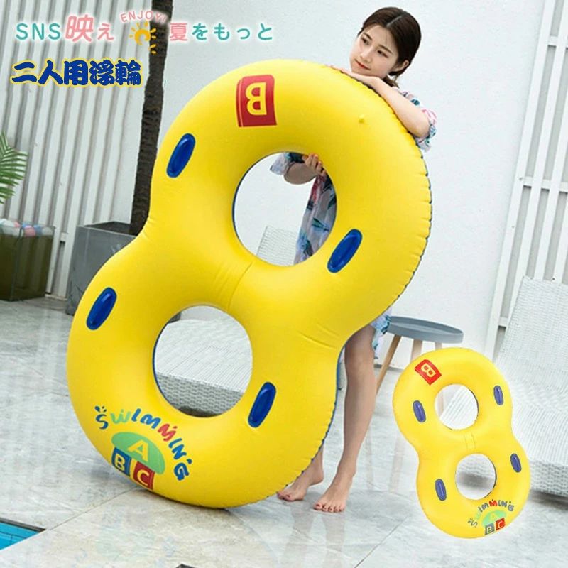 浮き輪 二人用浮輪 大人 子供ジャンボ 取っ手付き ダブルリング 大型 フロート高品質 ダブルエアバッグ レディースフロート ボートマット 個性的 アウトドア ボート インスタ映え キッ ビーチグッズ