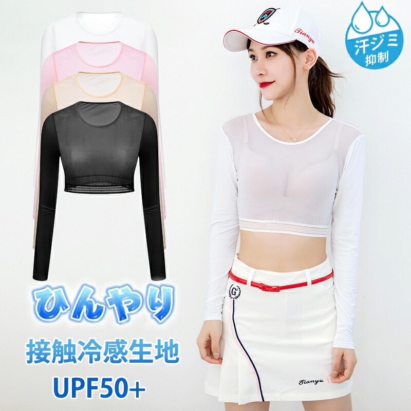 ゴルフ インナーウェア レディース シャツ UVカット アウトドア スポーツ 日焼け防止 ゴルフウェア 夏 接触冷感 UPF50+ ラッシュガード 吸汗速乾 通気 テ 大きいサイズ