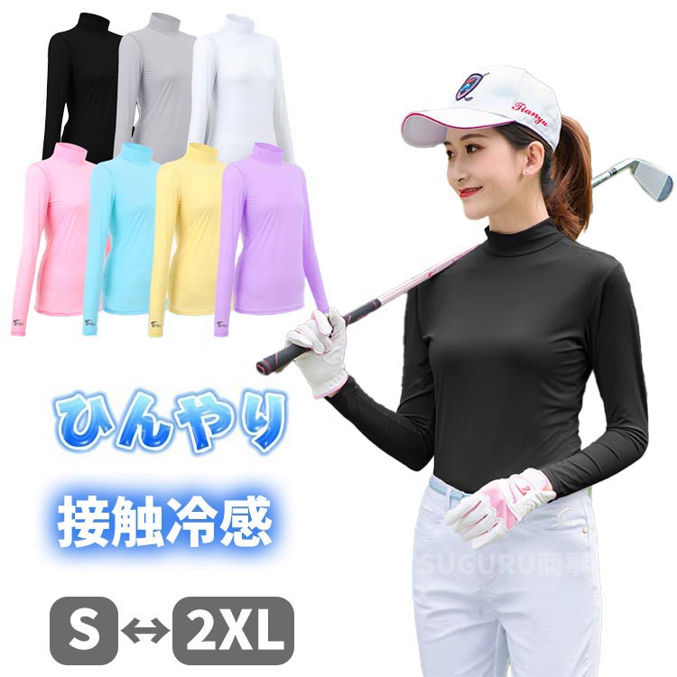 ゴルフウェア UVカット インナー シャツ 冷感 レディース 長袖 ハイネック UPF50+ 涼しい ゴルフシャツ ラッシュガード 吸汗速乾 通気 ゴルフ ランニング 運動 日よけ テニス