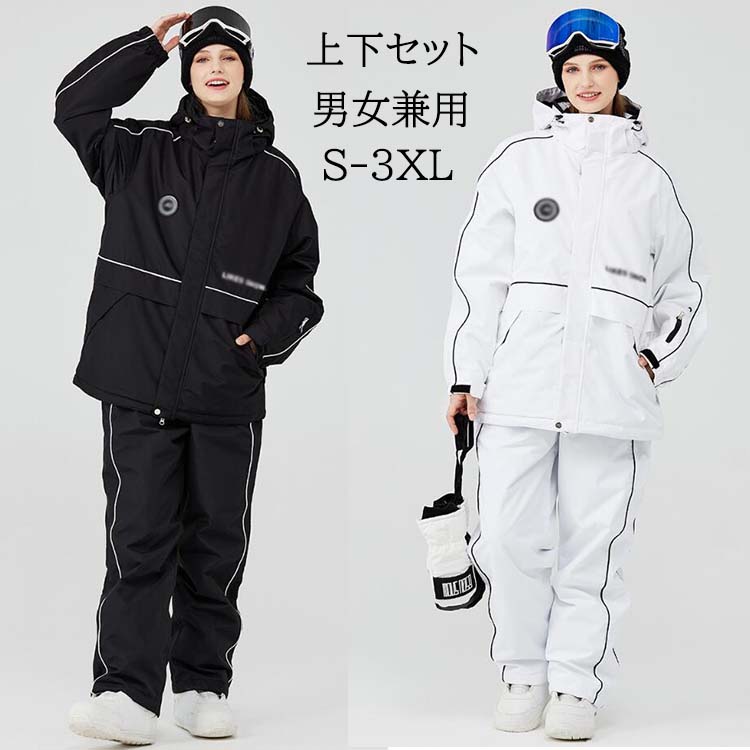 スノーボードウェア 上下セット レディース メンズ スキーウェア 男女兼用 ペア 黒 白 カッコイイ 防水防風 防寒 暖かい 2点セット ジャケット パンツ スノボウェア スノボ ウェア ボードウェア