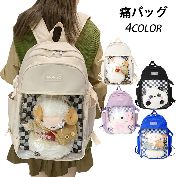痛バッグ カバン 鞄 レディース ガールズ リュック 大容量 缶バッチ デイリー 通学 学生 ビニールバッグ ヲタバ クリアバッグ 透明バッグ オタクバッグ カジュアル バ 見せバッグ