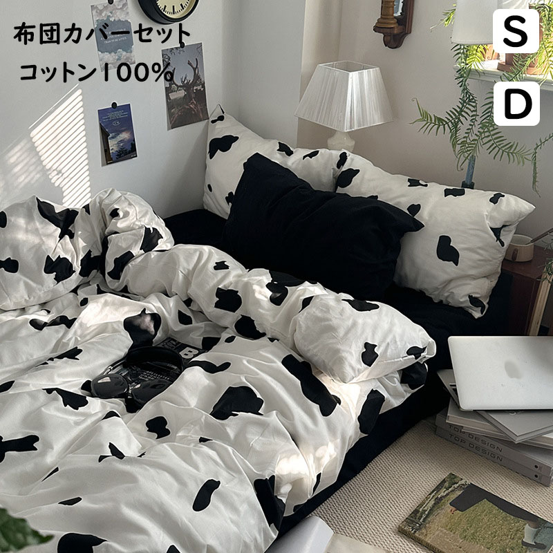 布団カバーセット 黒白 お洒落 シングル ダブル 綿100% 優しい肌触り 通気性 柔らか 四季通用 3点セット 4点セット ボックスシーツ フラットシーツ 枕カバー 新作 寝具カバー 掛け布団カバー