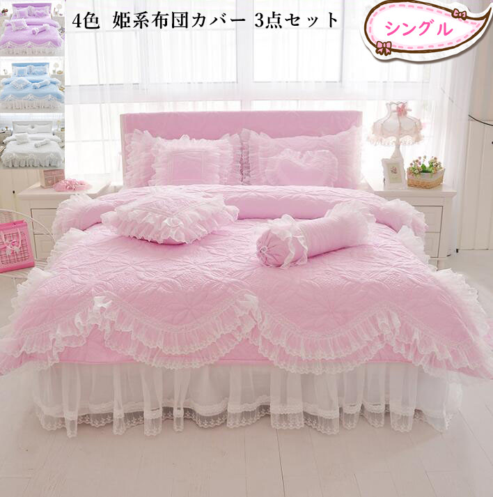 布団カバーセット 3点セット 姫系 レース キルティング 中綿 高級 ベッドスカート 枕カバー セミダブル シングル ダブル お誕生日プレゼント きれいめ 可愛い 四季通用 洗える 掛け布団 おしゃれ