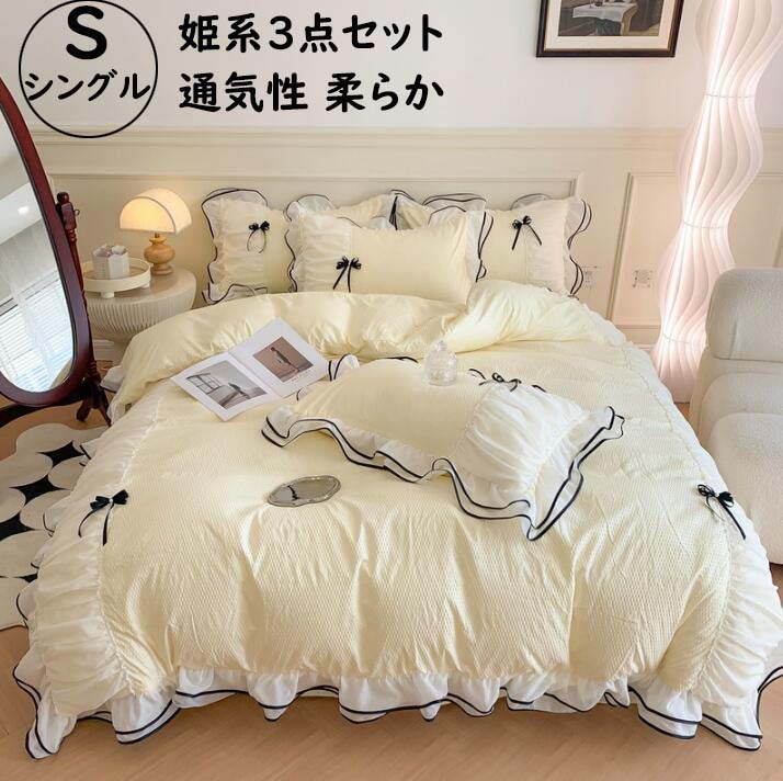 布団カバーセット 3点セット 姫系 シングル 可愛い フリル リボン 柔らかい 寝心地が良い フラットシーツ 掛け布団カバー 枕カバー 通気性 速乾 四季通用 ピロケース 洗濯可 寝具カバー きれいめ