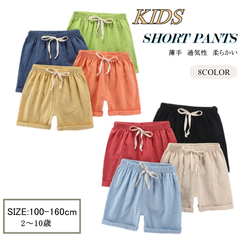 ハーフパンツ キッズ 夏 ショートパンツ リネン 薄手 ベビー服 男の子 女の子 短パン ジュニア 韓国子供服 ボトムス 綿 麻 無地 ナチュラル 涼し気 肌に優しい 子ども服 柔らかい かわい 夏服