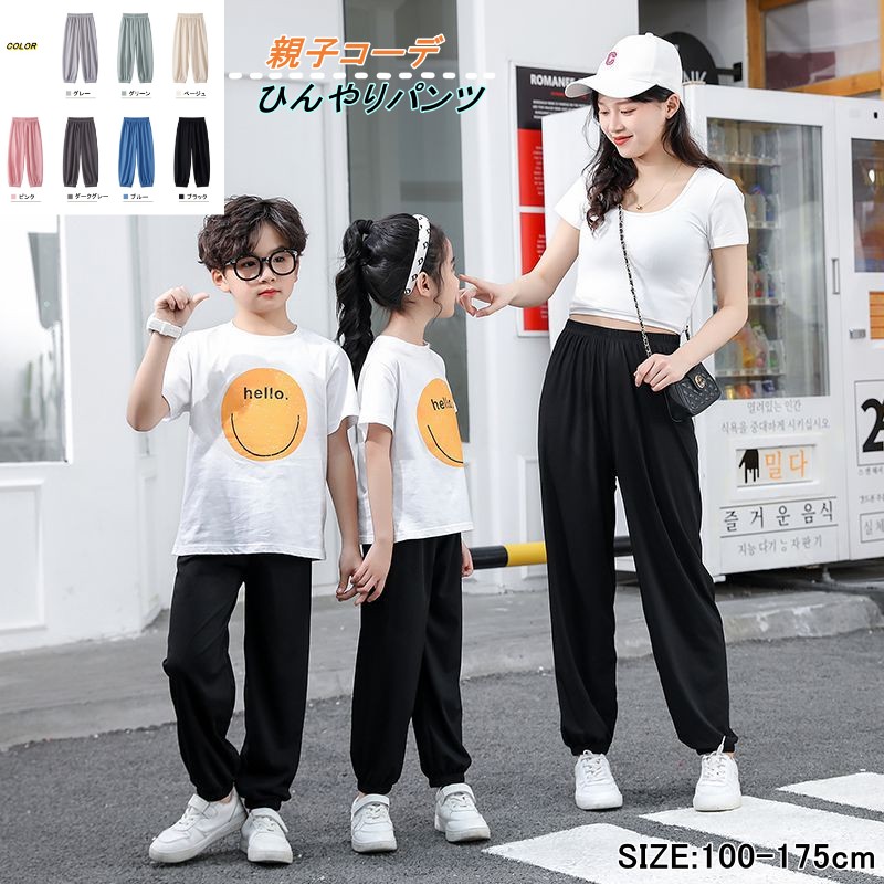 親子コーデ ズボン 接触冷感 親子お揃い 夏 涼しい キッズ レディース 子供服 男の子 女の子 サルエルパンツ 薄手 夏服 長ズボン 子ども服 かわいい ベビー ストレッチ 虫対策 速 ルームウェア