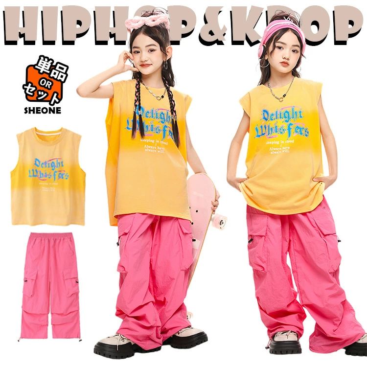 ピンク 黄色 タイダイ カーゴパンツ キッズ ダンス衣装 タンクトップ 女の子 男の子 スウェットパンツ セットアップ トップス パンツ カジュアル ヒップホップ ポッピング 演出服 練 ジャズダンス