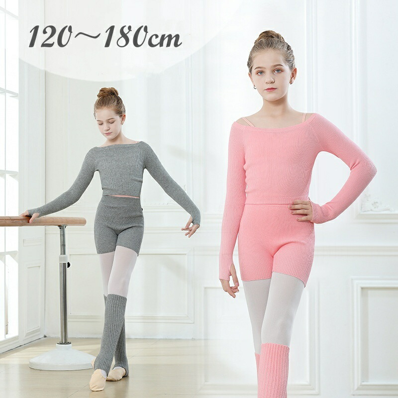 バレエ ウォームアップ 上下セット リブニット 長袖 ヨガ 防寒 温か 寒さ対策 ニットトップス ボレロ パンツ レッグウォーマー 社交ダンス 子供 キッズ バレエ用品 ニット 女の子 ジュニ ダンス