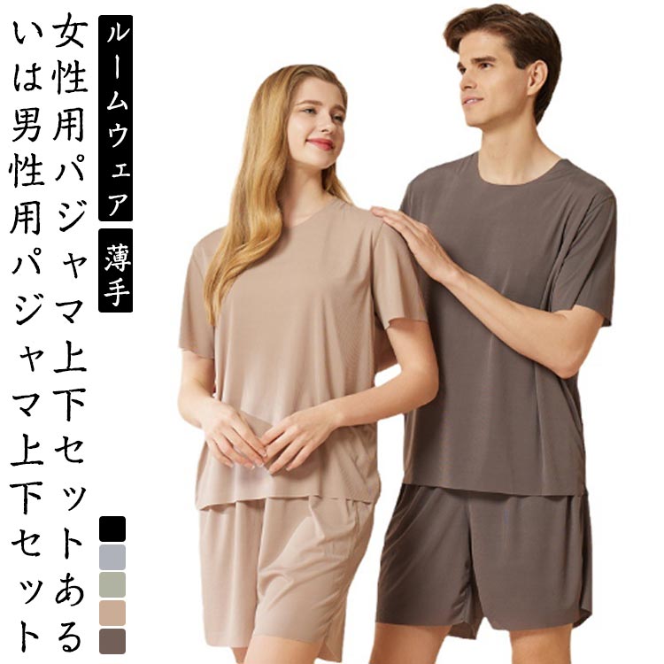 ペア 夏 お揃い 部屋着 セットアップ パジャマ メンズ カップル リラックスウェア 半袖 レディース 春 寝間着 ルームウェア 冷感 薄手 涼しい かわいい ナイトウェア 春夏 リラック 肌に優しい