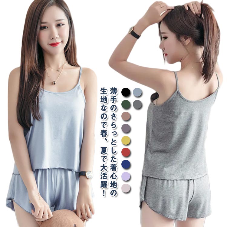 寝巻き キャミソール カップ付き パジャマ ナイトウェア 上下セット 半袖 レディー 短パン ルームウェア 楽ちん リラックス 可愛い シンプル 部屋着 寝間着 タンクトップ 肌に優しい