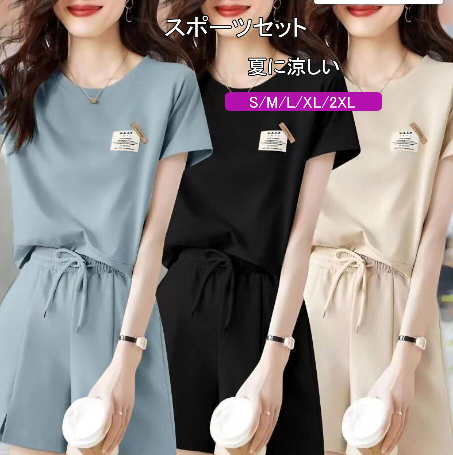 上下セット ショートパンツ 大人 シンプル 冷感 半袖 ルームウェア 夏 ハイウエスト 涼しい リラックスウェア 春夏 かわいい 可愛い ルームウエア アイスシルク パンツ パジャマ ナイトウ 短パン