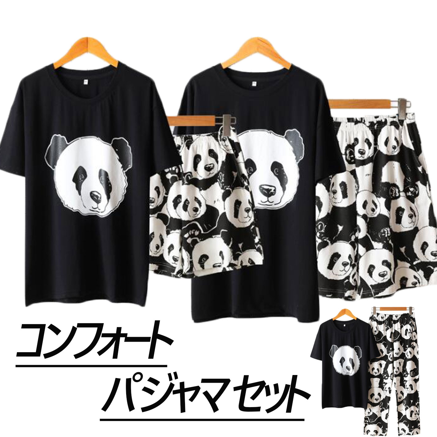 カップルお揃いパジャマ パンダ柄 ルームウェア 綿生地 パジャマセット クルーネック レディース 可愛いナイトウェア ゆったり カジュアル カップルペアルック ギフト プレゼント 誕生日 上下セット