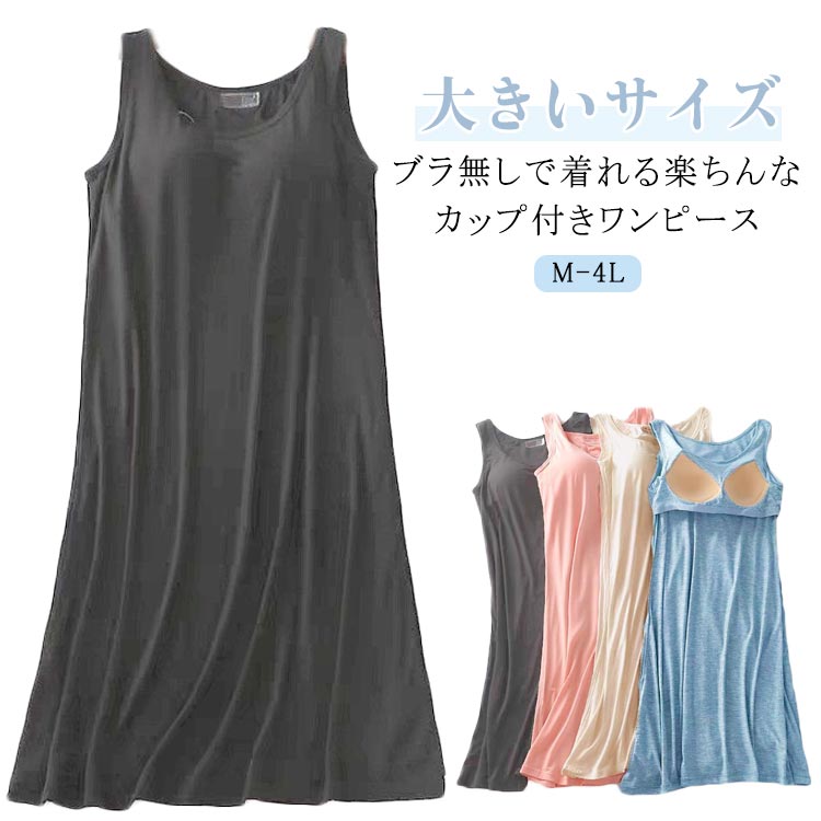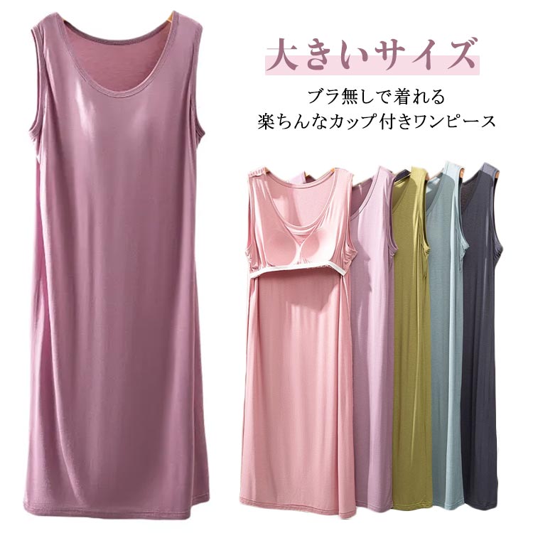 カップ付き 大きいサイズ ワンピース レディース ノースリーブ 部屋着 ロング丈 ルームウェア ノーブラ 無地 夏 パジャマ 夏服 春