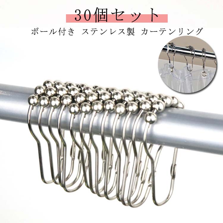 30個セット ボール付き ステンレス製 カーテンリングランナー 内径約3.6cm シャワーカーテン ランナー カーテン リングランナー カーテンランナー ドレープ アイアンカーテンラ リング