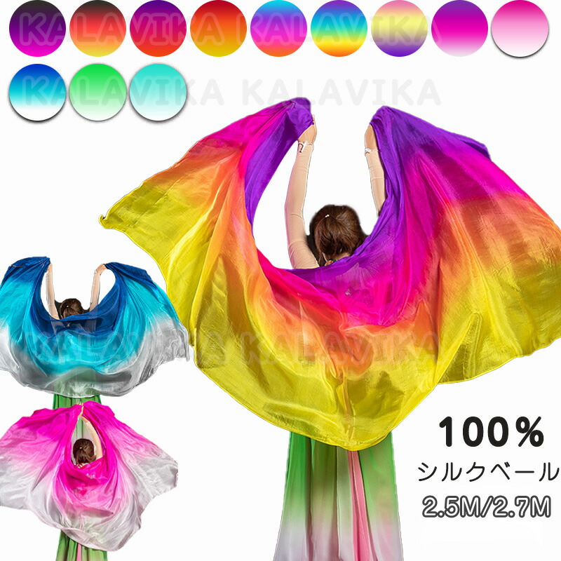 シルクベール 長さ270cm 長さ250cm ベリーダンス ベール シルク グラデーション コスチューム ステージ衣装ステージ小物 舞台 小道具 演出 飾り タイダイ柄 アクセサリー