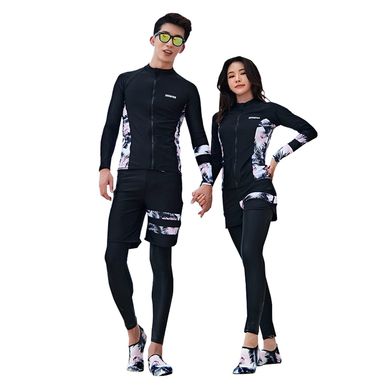 フィットネス 水着 ラッシュガード レディース 5点セット メンズ 3点セット 長袖 前開き サーフパンツ ペア水着 カップル お揃い ペアルック 競泳 通気性 吸汗 水陸両用 吸汗速乾 L46 速乾