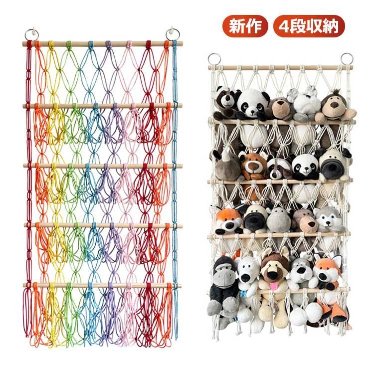 大容量 吊り下げ収納 タッセル ハンモック ぬいぐるみ 片付け 玩具 子供部屋 隙間収納 4段 ウォールポケット 壁掛け おもちゃ 収 見せる収納