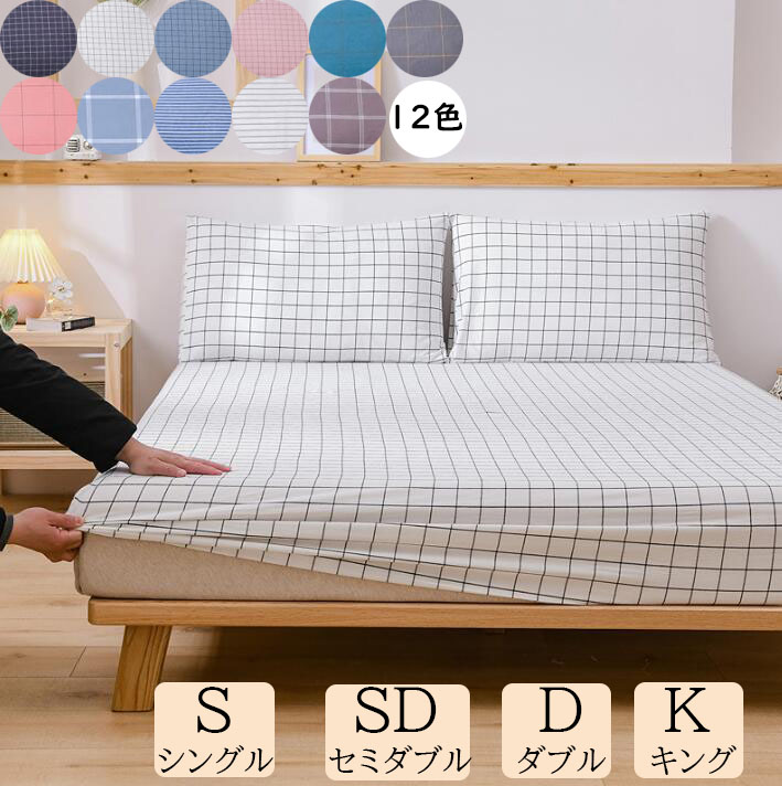 ボックスシーツ チェック柄 ストライプ柄 北欧 綿100% 洗いざらし シングル セミダブル ダブル クイーン キング 通気性 柔らかい 防ダニ 洗濯機可 ホテル マットレスカバー ベッドカバ 寝室