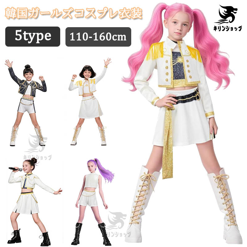 ハロウィン 仮装 キッズ ダンス衣装 女の子 韓国 アイドル 衣装 DEMON HUNTERS ヒップホップ ジャズダンス チアガール K-POP デーモンハンターズ 発表会 応援団 団体服 ガールズ