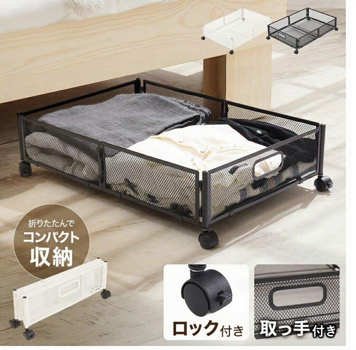 ベッド下収納 キャスター付き 収納ボックス 折りたたみ 収納ケース 薄型 収納ワゴン キャスター ベッド下収納ボックス ローラー付き 大容量 布団収納 スペース活用 隙間収納 整理ボッ 衣類収納