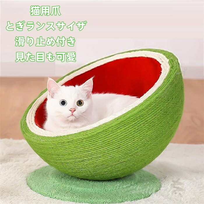 猫 爪とぎ 麻 ねこ ベッド 猫ベッド 可愛い つめとぎ 爪研ぎ 運動不足改善 すり鉢型 滑り止め付き ストレス解消 家具破壊防止 スイカ バランス 天然素材 丈夫 掻 サイザル麻