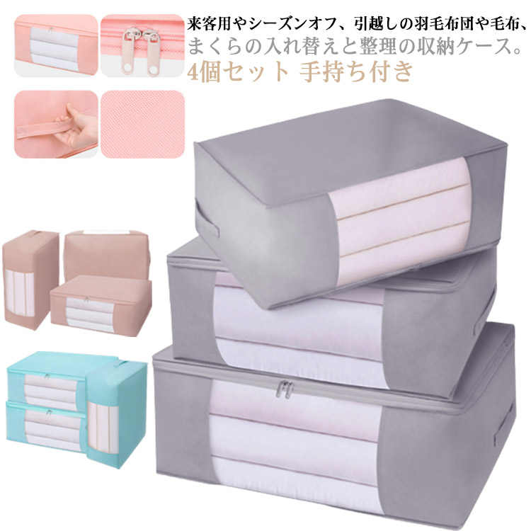 送料無料 布団 押入れ 4個セット 収納袋 収納ケース 掛け布団 持ち運び シングル おしゃれ 布団収納 羽毛布団 ブランケット タオルケット 布団収納袋