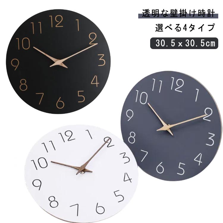 掛け時計 電波時計 透明 軽量 壁掛け時計 北欧風 木製 おしゃれ 静音 直径30cm 35cm 薄型デザイン 寝室用 連続秒針 部屋飾り インテリア 日本語の説明書付き CLOCK