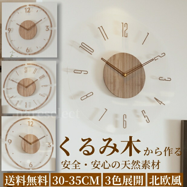 3タイプ展開 壁掛け 時計 ウォールクロック 北欧 木製 静音 かわいい 乾電池式 インテリア 壁掛け時計 掛け時計 音がしない クロック リビング オフィス 贈り物 寝室