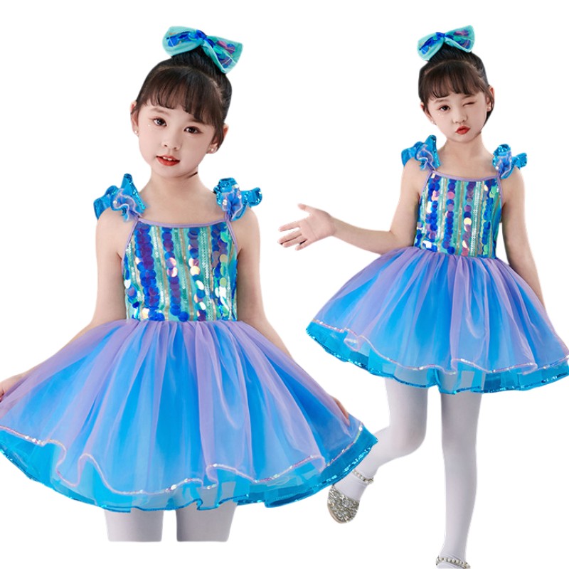 ダンスウェア 可愛い子供ワンピース チュチュドレス ダンス衣装 スパンコールワンピース チュールドレス キッズ 女の子 舞台 ステージ 衣装 子ども ジュニア 学園祭 発表会