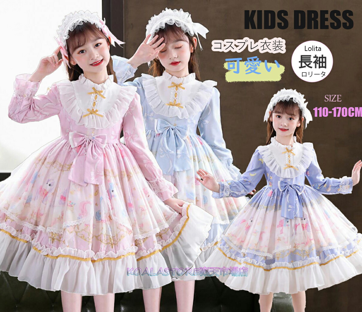 子供長袖ワンピース キッズロリータ服 ロリータワンピース 甘ロリータ 姫様ドレス お姫様コスチューム キッズドレス 女の子 可愛いコスチューム ゴスロリ コスプレ衣装