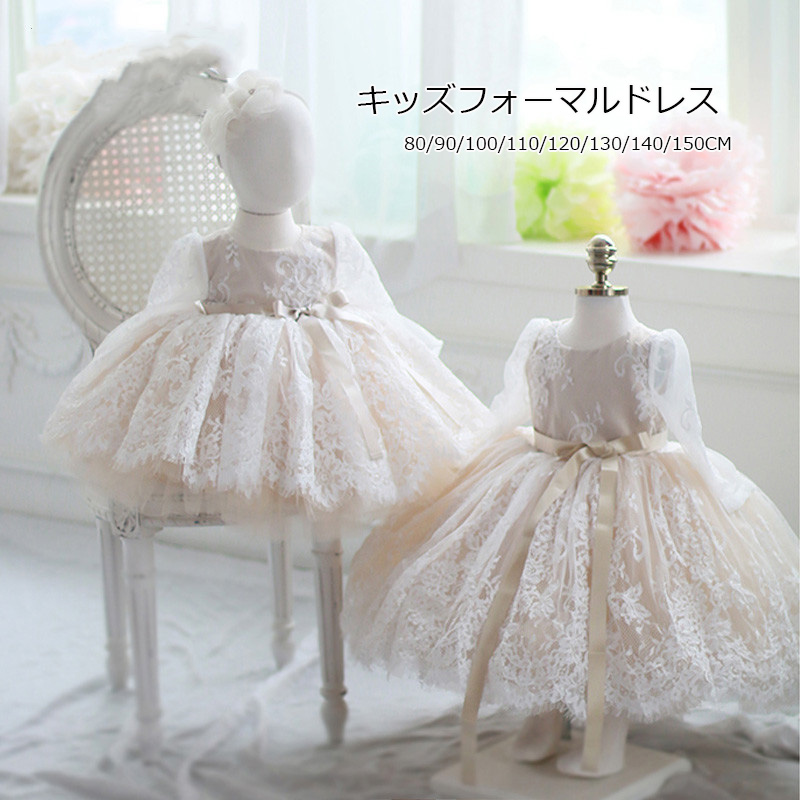 リングガール ドレス 女の子 レース 長袖 キッズドレス ベビードレス シャンペン プリンセス 七五三 リボン 赤ちゃん ワンピース 誕生日 プレゼント フォーマルドレス 発表会 子供服 ギフト