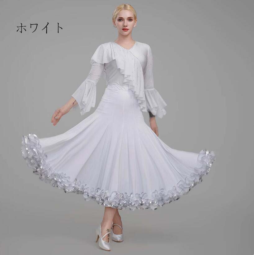 社交ダンス衣装 スカート モダン衣装 社交ダンス フラメンコ スレンダー 練習着 パーティー 競技用のドレス ワルツ モダンドレス レッスン着 ステージ衣装 ダンスウェア 社交ダンスドレス