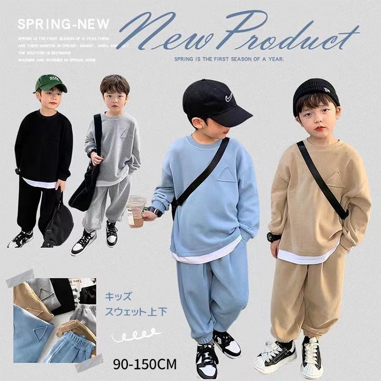 スウェット 上下セット 重ね着風 セットアップ キッズ ボーイズ トレーナー 子供 長袖 スポーツウェア ジャージ 切り替 ゆったり カジュアル ダンス 男の子 ジュニア服 通園 運動着 春 秋 通学