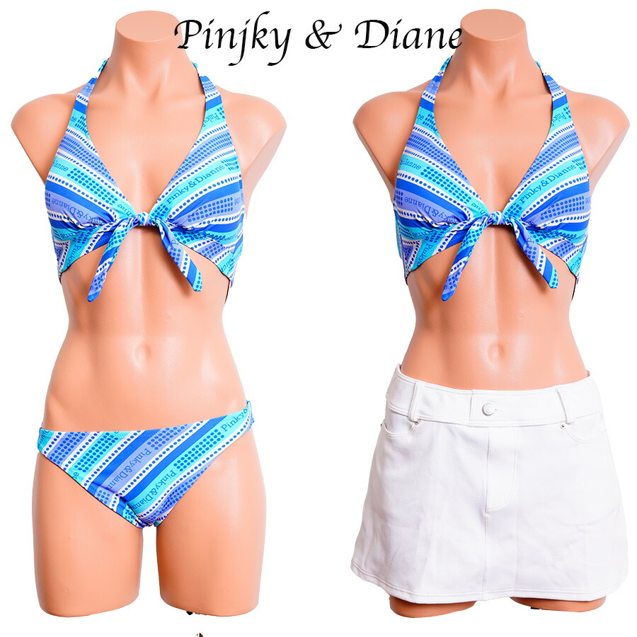 水着 送料無料 レディース セパレート 4点セット ショートパンツ サーフパンツ パンツ付き ホルターネック ビキニ ワイヤービキニ ボーダー柄 & ピンキー&ダイアン